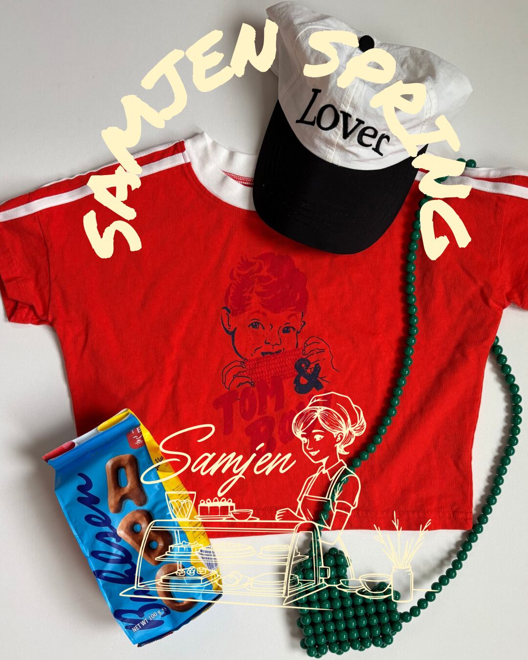 赤いカラーが夏らしいロゴが主役のTシャツ